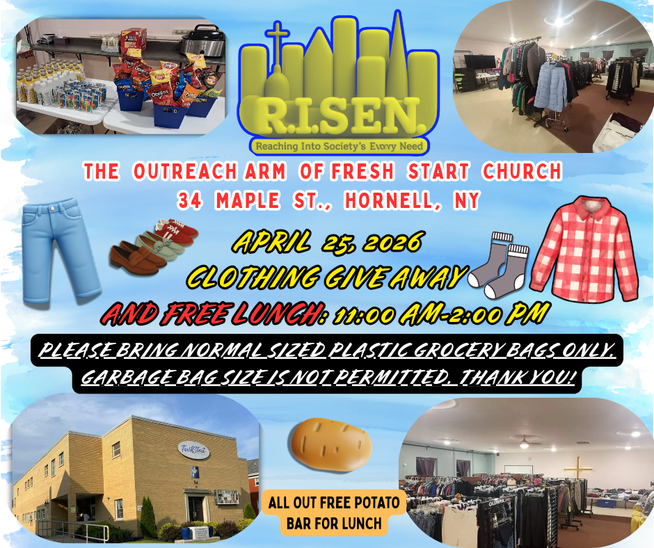 Our monthly R.I.S.E.N. outreach of feeding and clothing the community - all is free.